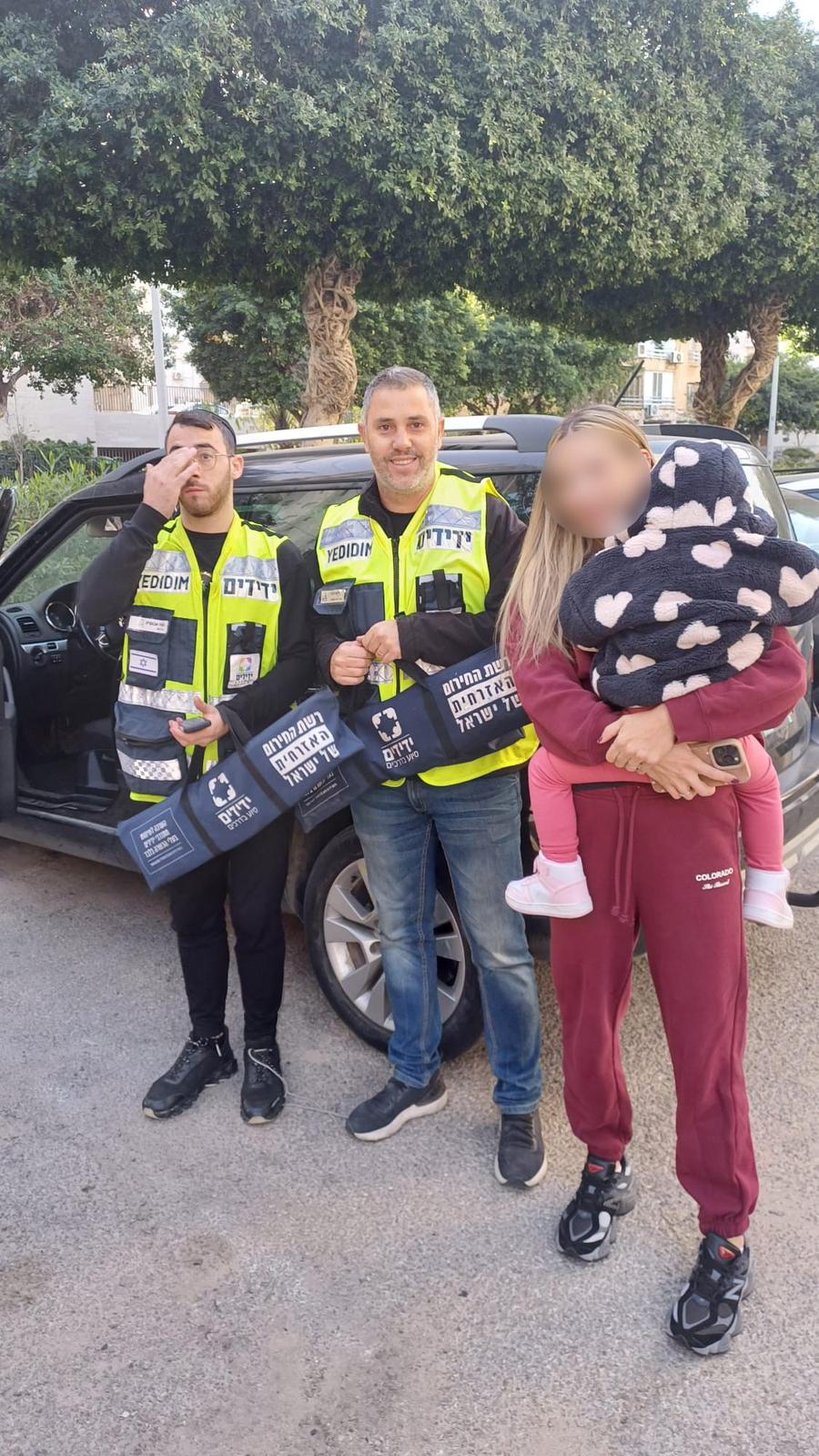 אתי עמר, מוקדנית ידידים שענתה לשיחה, הזעיקה מתנדבים למקום. ליעד פרץ – מנהל סניף אשדוד יחד עם מאיר אבוקרט ושוהם מסי, מתנדבי הסניף, נענו לקריאה והגיעו במהירות למקום. באמצעות הציוד הייעודי שברשותם, חילצו המתנדבים את הפעוטה בשלום וללא גרימת נזק לרכב.