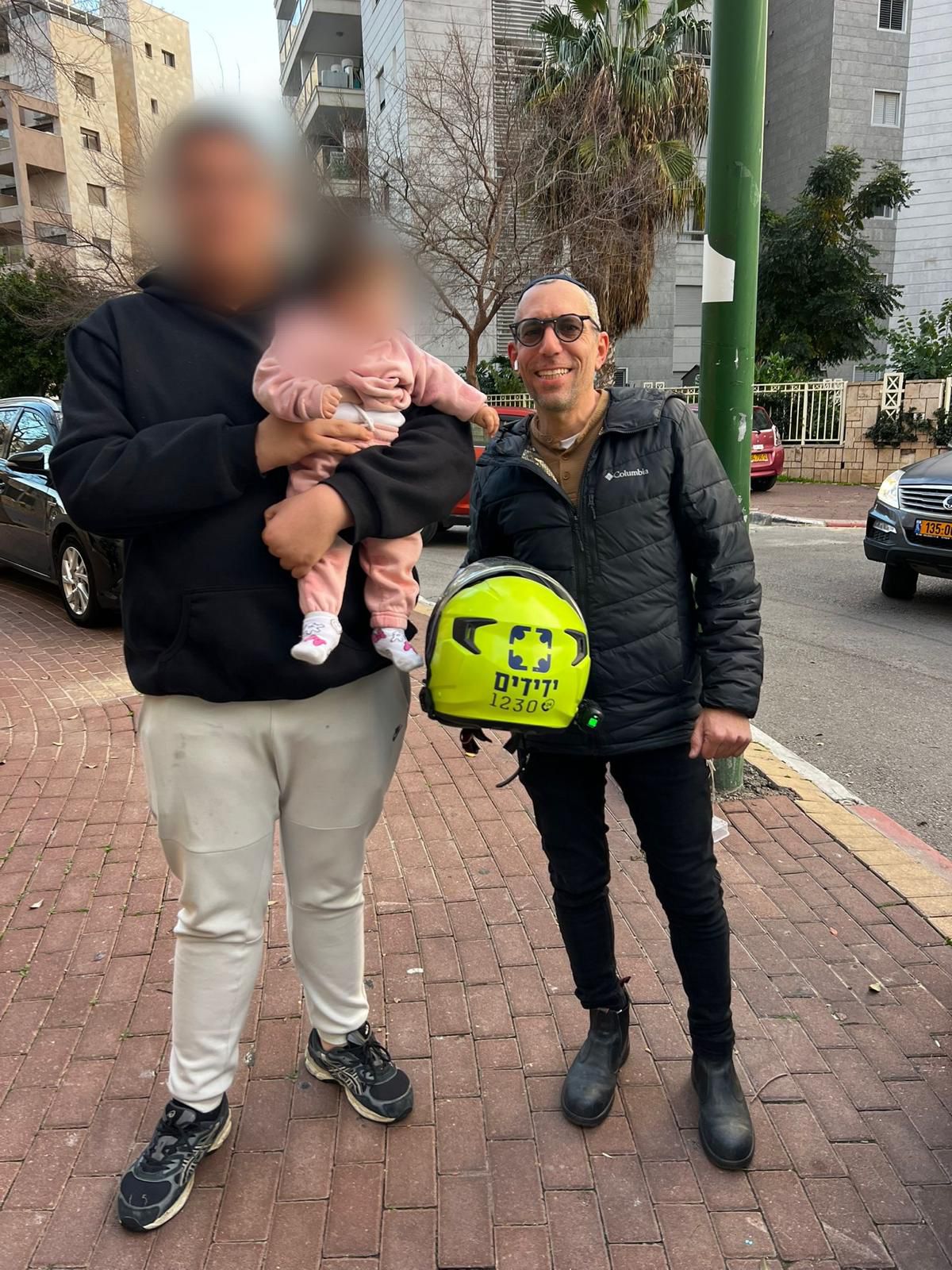 דניאל ברכה – מתנדב ביחידת האופנועים של ידידים, נענה לקריאה והגיע במהירות למקום. באמצעות הציוד הייעודי שברשותו, חילץ דניאל את התינוקת בשלום וללא גרימת נזק לרכב.