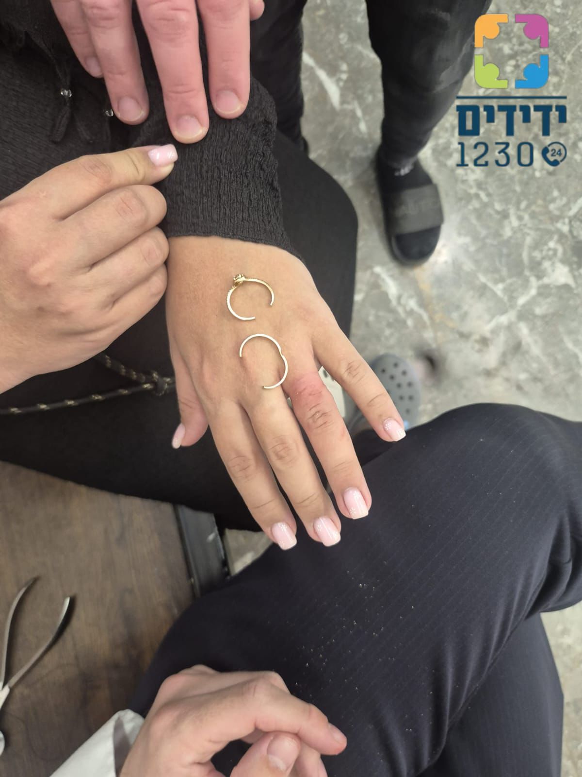 היום (שישי) בשעה 11:52, קיבל מוקדן ידידים, מתן סימנוק, שיחה אודות גברת בהריון מתקדם ששתי טבעותיה נתקעו באצבעה ללא יכולת להוציאן, בביה”ח מעייני הישועה בבני ברק.