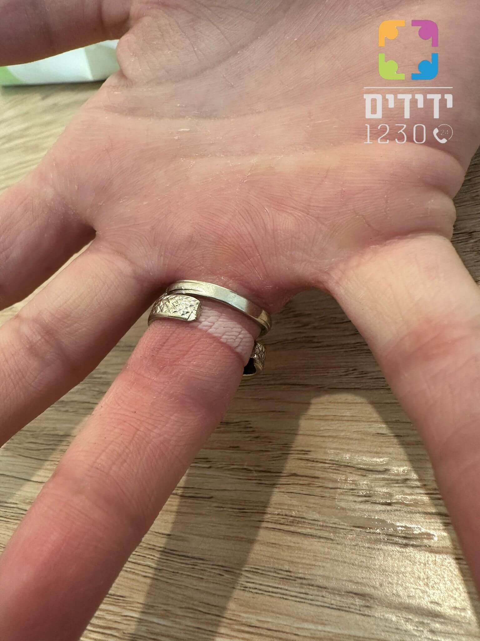 בסוף השבוע האחרון התקבלה קריאה במוקד ידידים, אודות טבעת שנתקעה סביב אצבעה של גברת בחודש תשיעי להריונה, מבלי יכולת לחלצה, ברחוב הנשיא השישי שבשכונת משכנות האומה בירושלים.