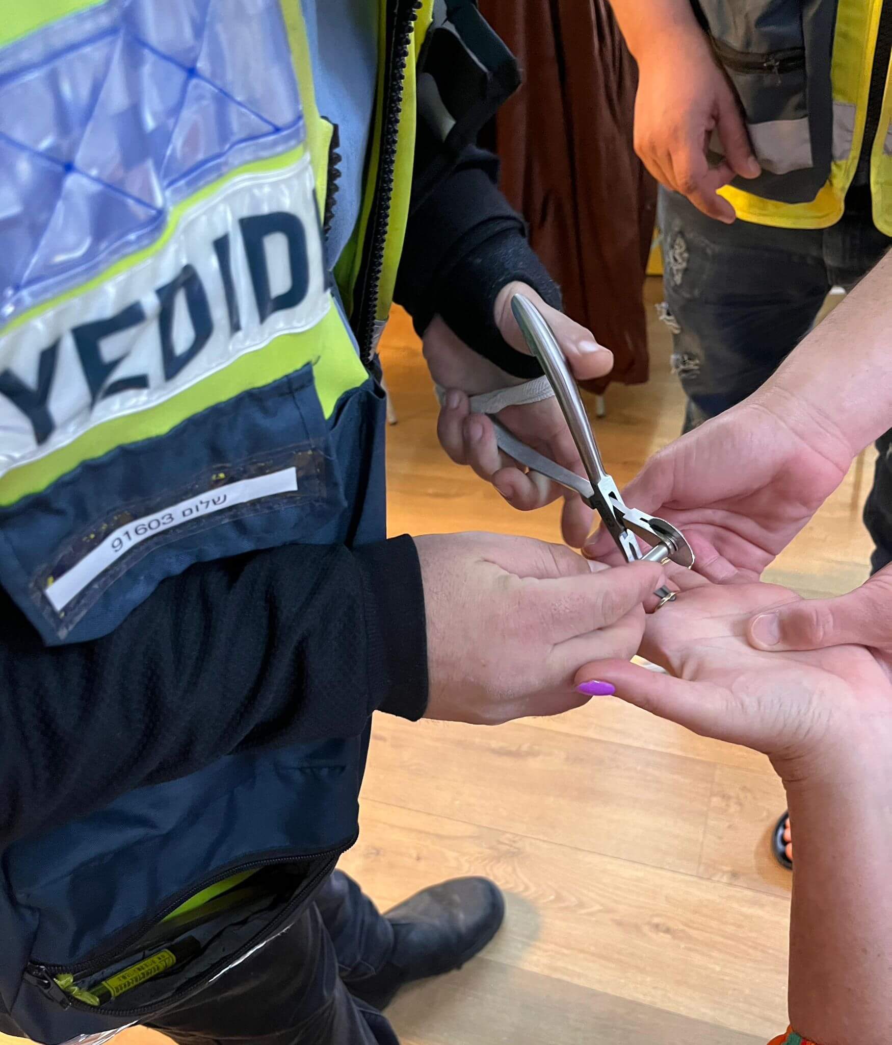 נתניה: טבעת נתקעה באצבעה של אישה וחולצה על ידי מתנדבי ידידים • “בעיצומן של חגיגות המימונה יצאנו לסייע” • צפו 🎥