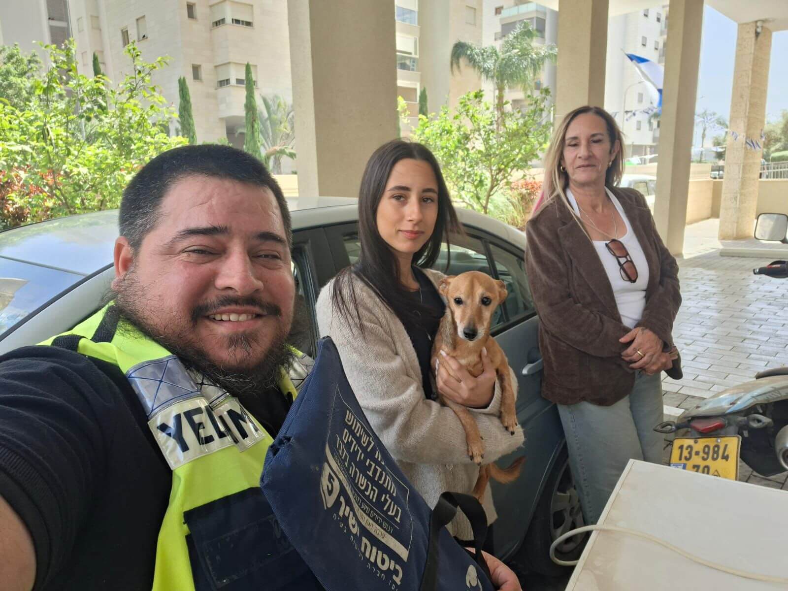 שניאור גלדציילר, מתנדב הסניף, נענה לקריאה והגיע במהירות למקום. באמצעות הציוד הייעודי שברשותו חילץ שניאור את הכלב בשלום, מבלי לגרום נזק לרכב.