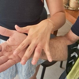 נועם מספר: ״התארגנתי לצאת לעבודתי כשנכנסה קריאת חירום. מיד יצאתי למקום. פגשתי בגברת שסיפרה לי כי נעקצה באצבע, מה שגרם לה להתנפח מאוד וכך הטבעת נתקעה עליה. באמצעות הכלי הייעודי של ידידים, חתכתי בעדינות את הטבעת, וחילצתי את האצבע בשלום. הגברת הודתה לי על השירות המהיר, ואמרה שאנחנו עושים דברים נפלאים. כיף לשמוע את זה על הבוקר, ולצאת לעבודה בסיפוק רב.״