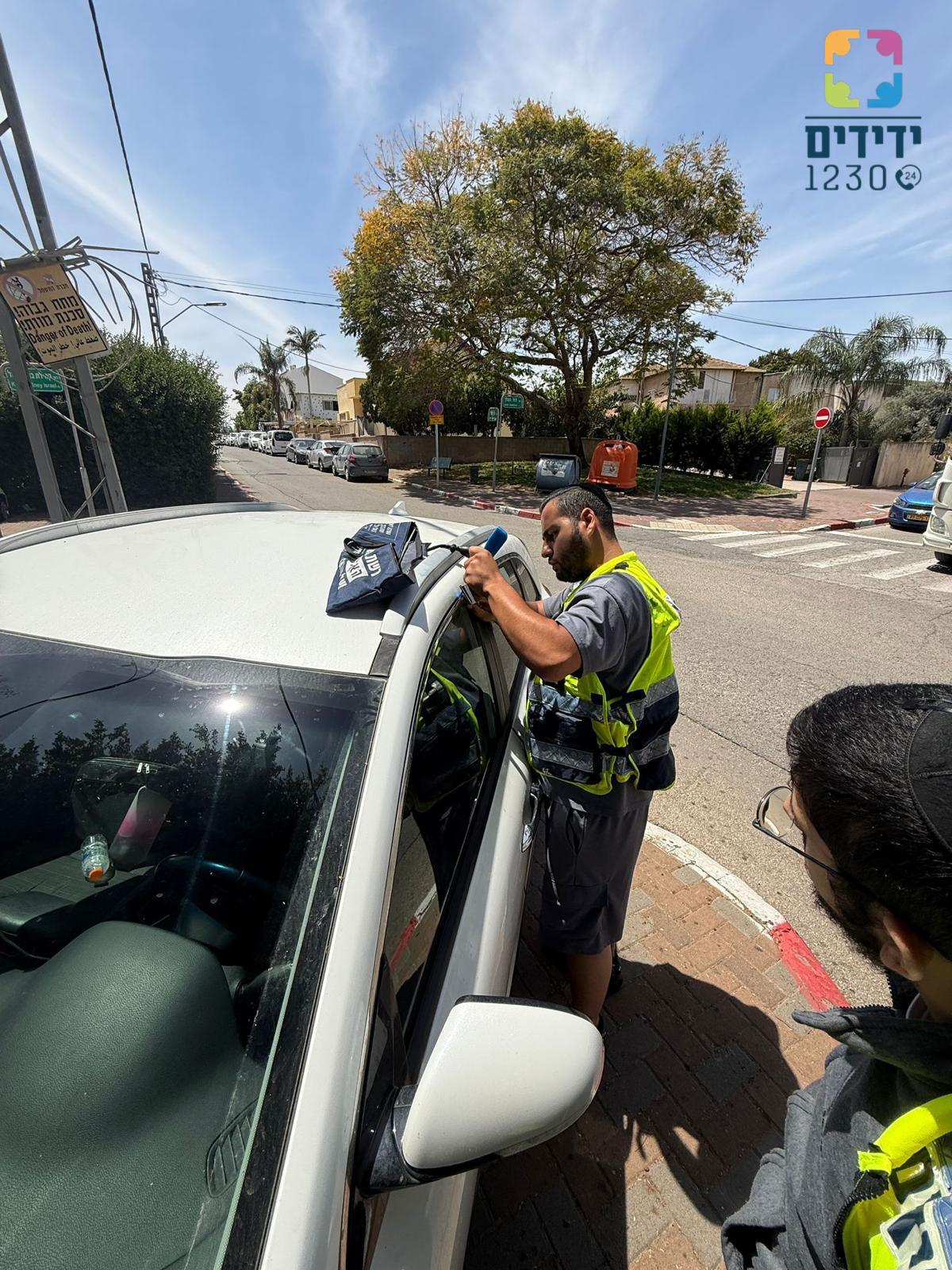 שמעון שטרן, מוקדן ידידים, ענה לשיחה והזעיק מתנדבים לסייע. נתנאל רחום ונועם נחום, מתנדבי הסניף המקומי, נענו לקריאה והגיעו במהירות למקום. באמצעות הציוד הייעודי שברשותם, חילצו השניים את הפעוט בשלום ובזריזות, ללא גרימת נזק לרכב.