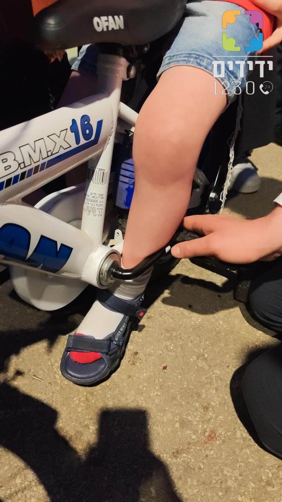 הערב (חמישי) בשעה 19:14, קיבל מוקדן ידידים, יעקב אלחנן היימן, שיחה אודות ילד שרגלו נתקעה בין הדוושה לגוף האופניים, בפארק הלאומי ברמת גן.